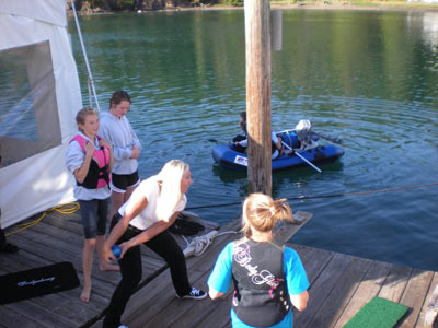 The annual Riviera Rendezvous entertained owners with a host of activities including Target Toss, a game where water balloons were tossed into a dinghy that was anchored 30 feet off the docks. Other entertainment included the Pot Luck Dinner, Captain’s Quiz, golf off the dock, the blindfolded dinghy race, Casino party, and the blindfolded obstacle course where the captain would direct the blindfolded first mate with the directions port, starboard, forward and back with the aim of the game being to steer them to a ball which they would then carry back to the captain on a spoon.